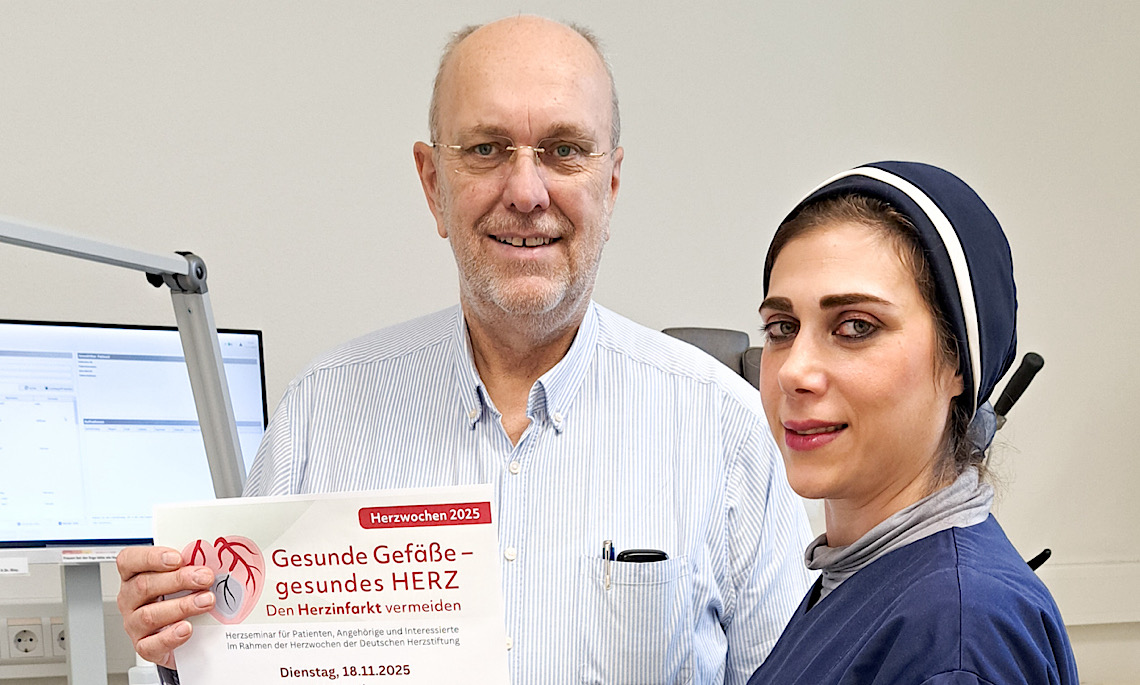 Unter dem Motto „Gesunde Gefäße – gesundes Herz – den Herzinfarkt vermeiden“ geben Dr. med. Norbert Bley, Chefarzt der Abteilung Innere Medizin Fachbereich Kardiologie, und Sara Molanejad, Leitende Oberärztin der Abteilung Innere Medizin und Fachärztin Kardiologie, wertvolle Einblicke in die Herzgesundheit. Ziel ist es, Wissen zu vermitteln, Fragen zu klären und praktische Tipps für ein herzgesundes Leben zu teilen.