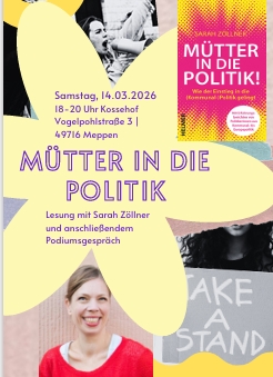 Diese und weitere Fragen stehen im Mittelpunkt der Lesung „Mütter in die Politik“ mit Sarah Zöllner. Die Autorin und freie Journalistin sowie Initiatorin der parteiübergreifenden Vernetzungsplattform muetter-macht-politik.de arbeitet zu den Themen politische Teilhabe, Gleichstellung und Vereinbarkeit und unterstützt Parteien, Organisationen und Verwaltungen dabei, Strukturen familienfreundlicher zu gestalten. In ihrem Buch verbindet sie persönliche Erfahrungen mit Analysen politischer Strukturen und zeigt, warum politische Beteiligung für viele nach wie vor mit hohen Hürden verbunden ist.
