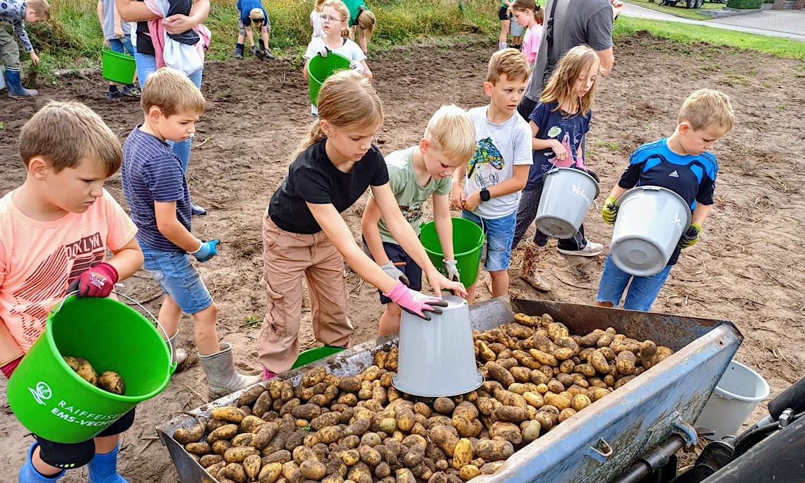 Ein besonderes Highlight sind auch in diesem Jahr wieder die frisch geernteten Kartoffeln der Kinder der Clemensschule Wesuwe. Am 30. August 2025 haben die Schüler gemeinsam mit Mitgliedern des Arbeitskreises Agrar des Heimatvereins die Knollen auf traditionelle Weise geerntet – mit alten Maschinen, „wie zu Opas Zeiten“. Diese Kartoffeln können die Besucher auf dem Markt erwerben und so ein Stück Wesuweer Geschichte mit nach Hause nehmen.