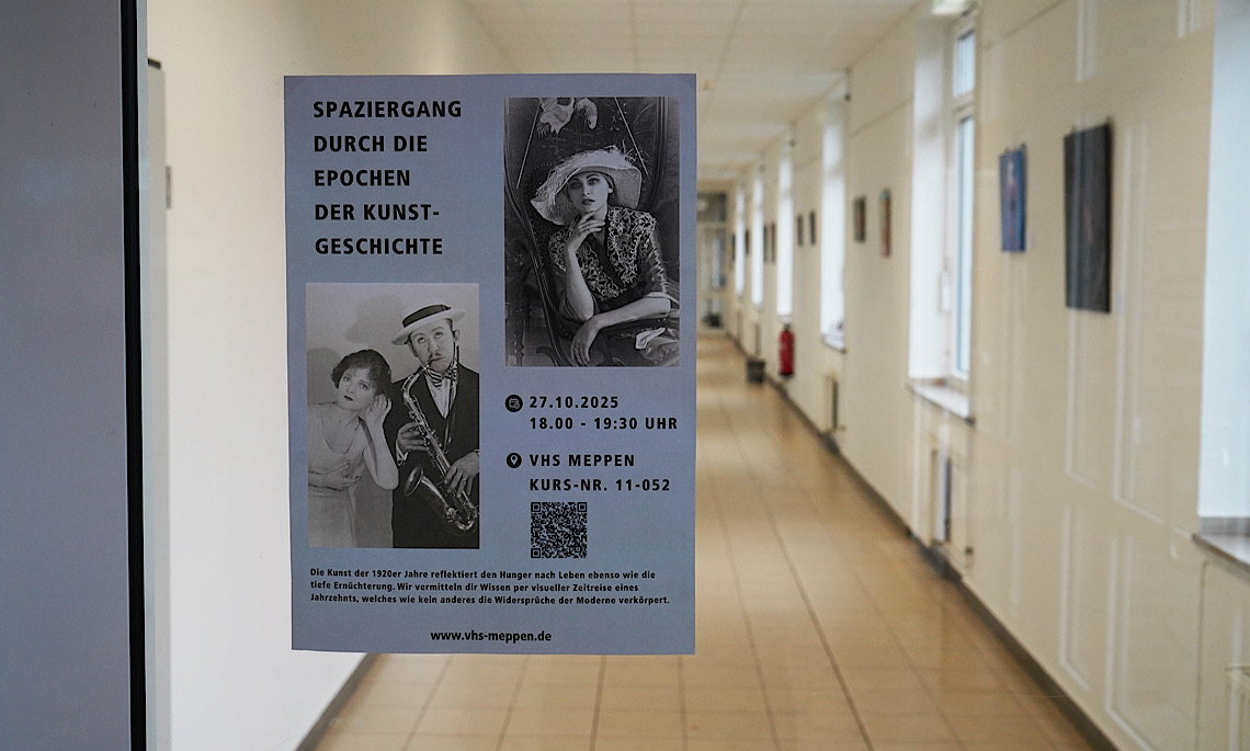 Am Montag, den 27. Oktober 2025, von 18:00 bis 19:30 Uhr, lädt die VHS Meppen zu einer spannenden Zeitreise in die Kunstgeschichte der 1920er Jahre ein.Unter der Leitung von Astrid Uthmann-Rothkötter erhalten die Teilnehmer Einblicke in eine bewegte Epoche der Kunst – von expressiven Strömungen bis hin zu gesellschaftskritischen Tendenzen. Der Vortrag eignet sich auch als Inspiration für zukünftige Museumsbesuche.